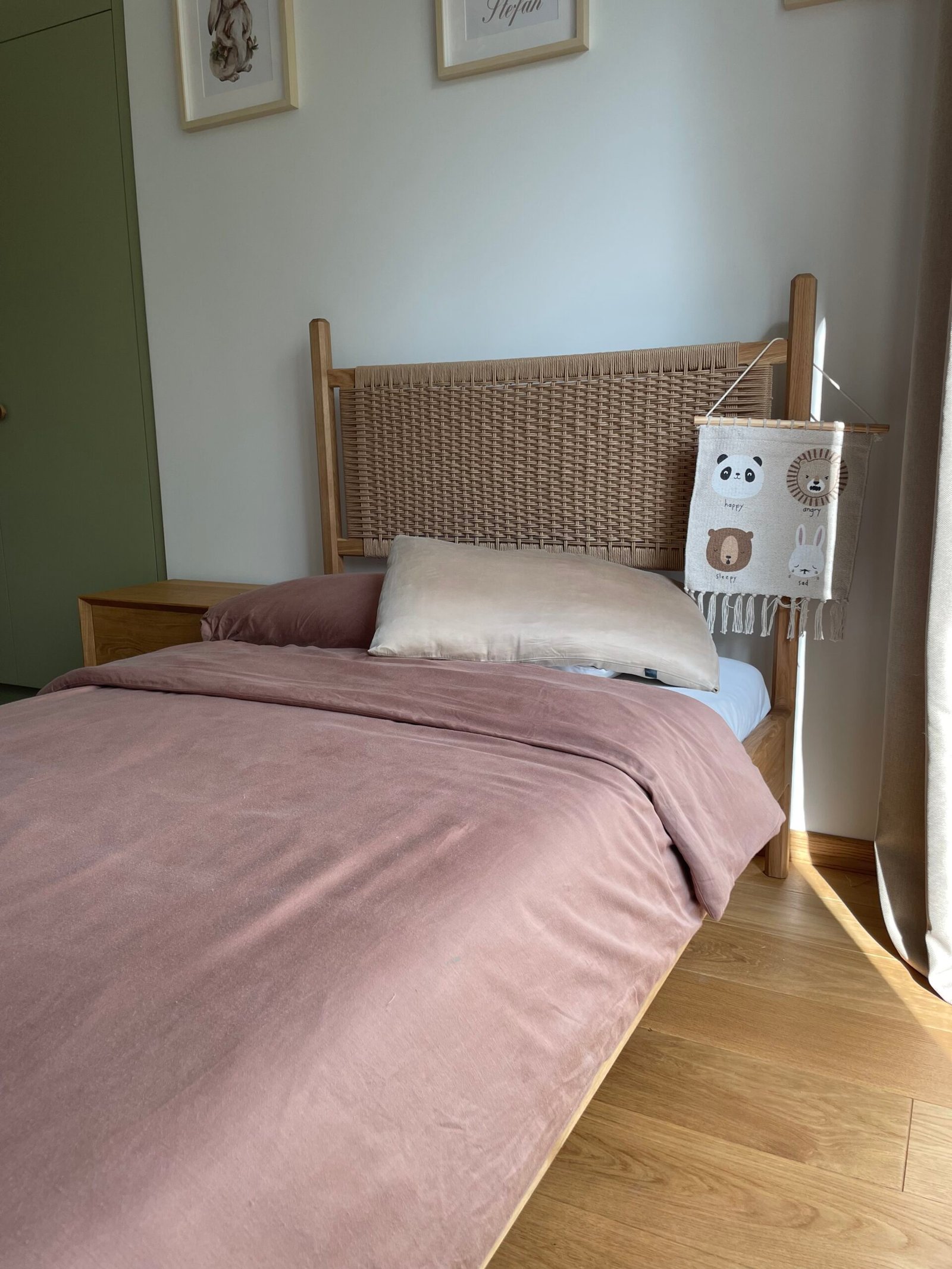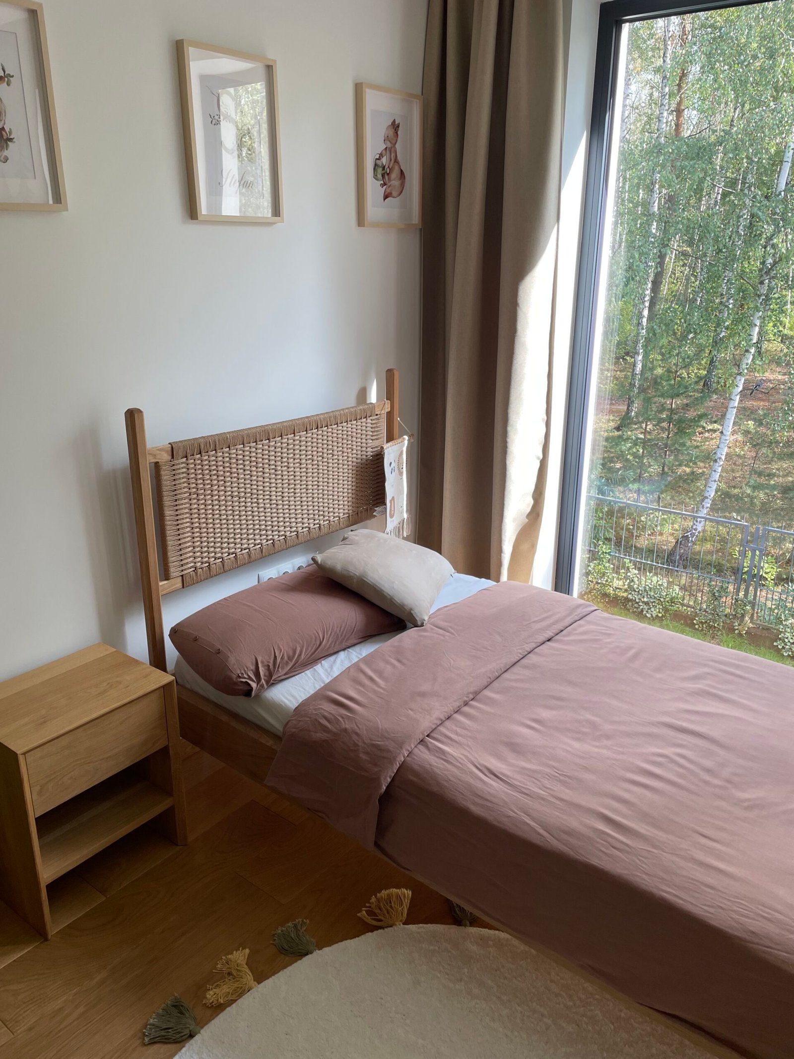 Nasze łóżko dębowe z plecionką wykonane jest z litego drewna dębowego, cenionego za trwałość, stabilność i piękną strukturę słojów. Wezgłowie zdobi ręcznie wykonana plecionka z naturalnego sznurka, która nadaje całości lekkości i wyjątkowego charakteru. Każdy element mebla został starannie dopracowany, aby zapewnić komfort użytkowania i długowieczność konstrukcji.
